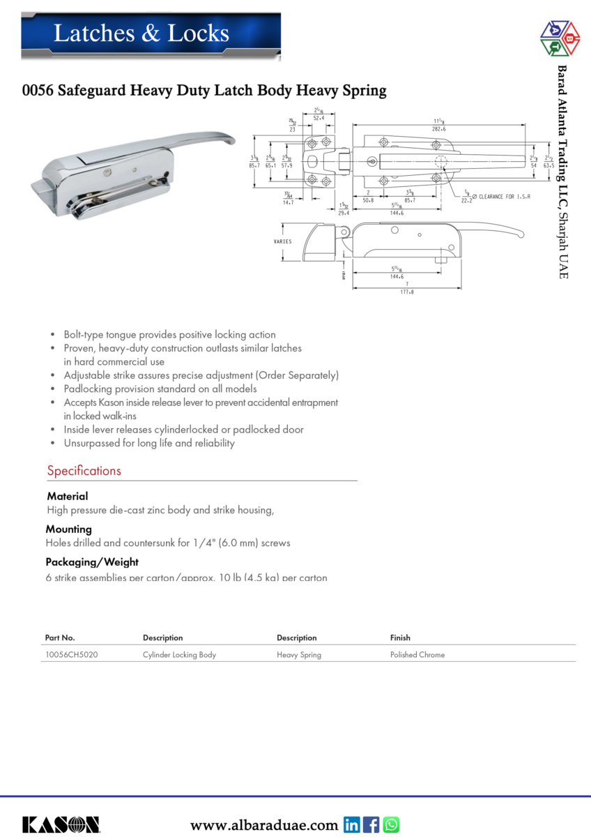 KASON 0056 Safeguard Heavy Duty Latch Body Heavy Spring