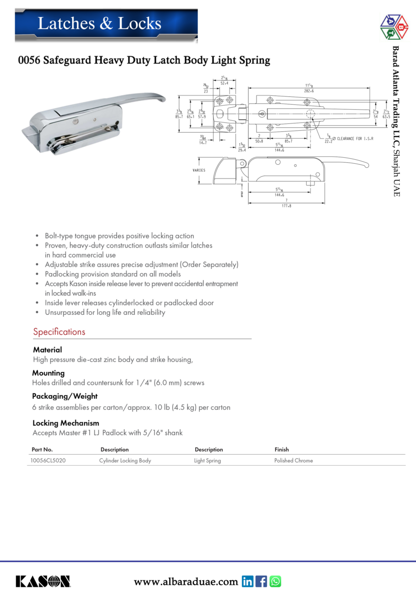 * Proven, heavy-duty construction outlasts similar latches in hard commercial use