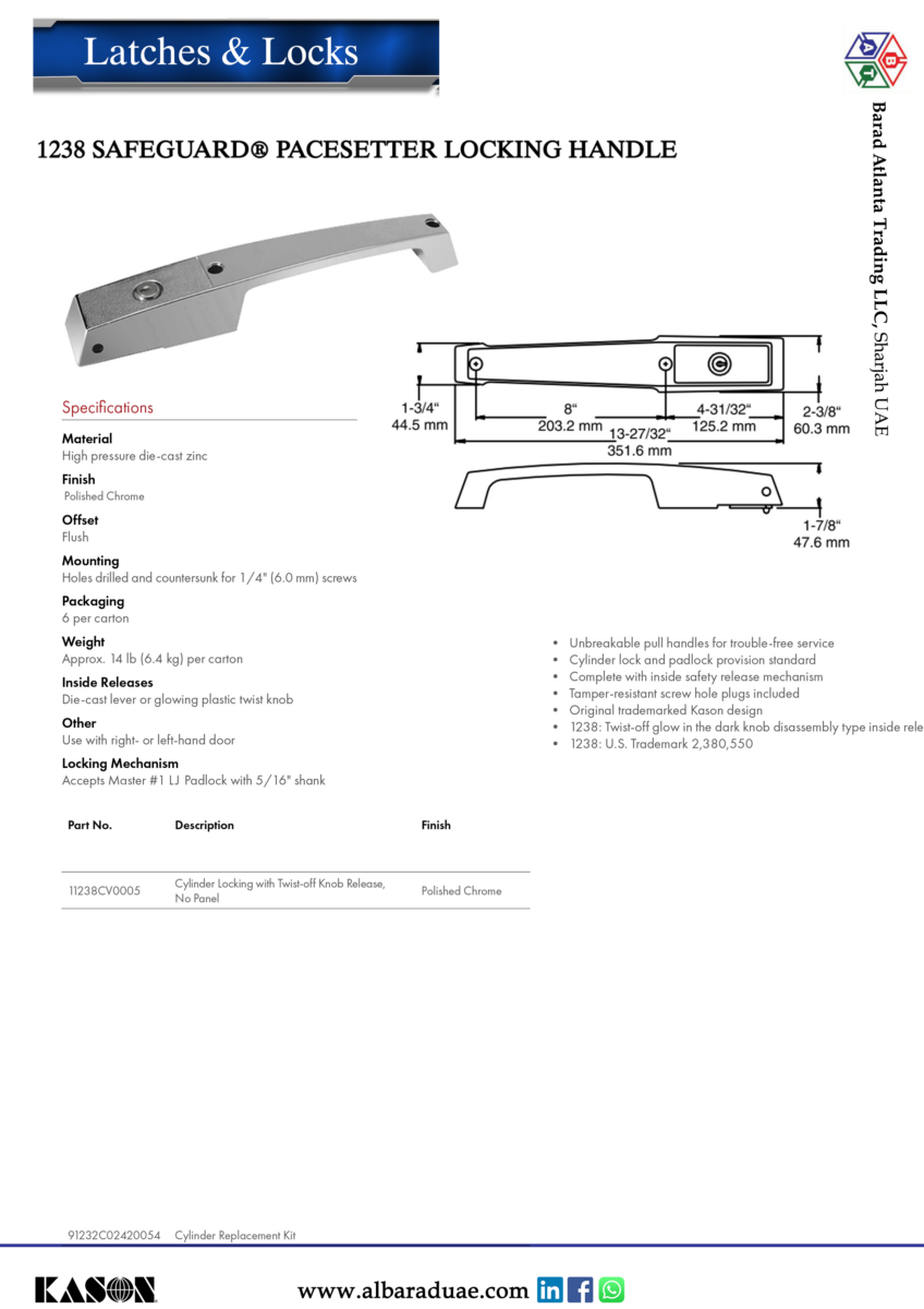 SKU: 1238 SAFEGUARD® PACESETTER LOCKING HANDLE