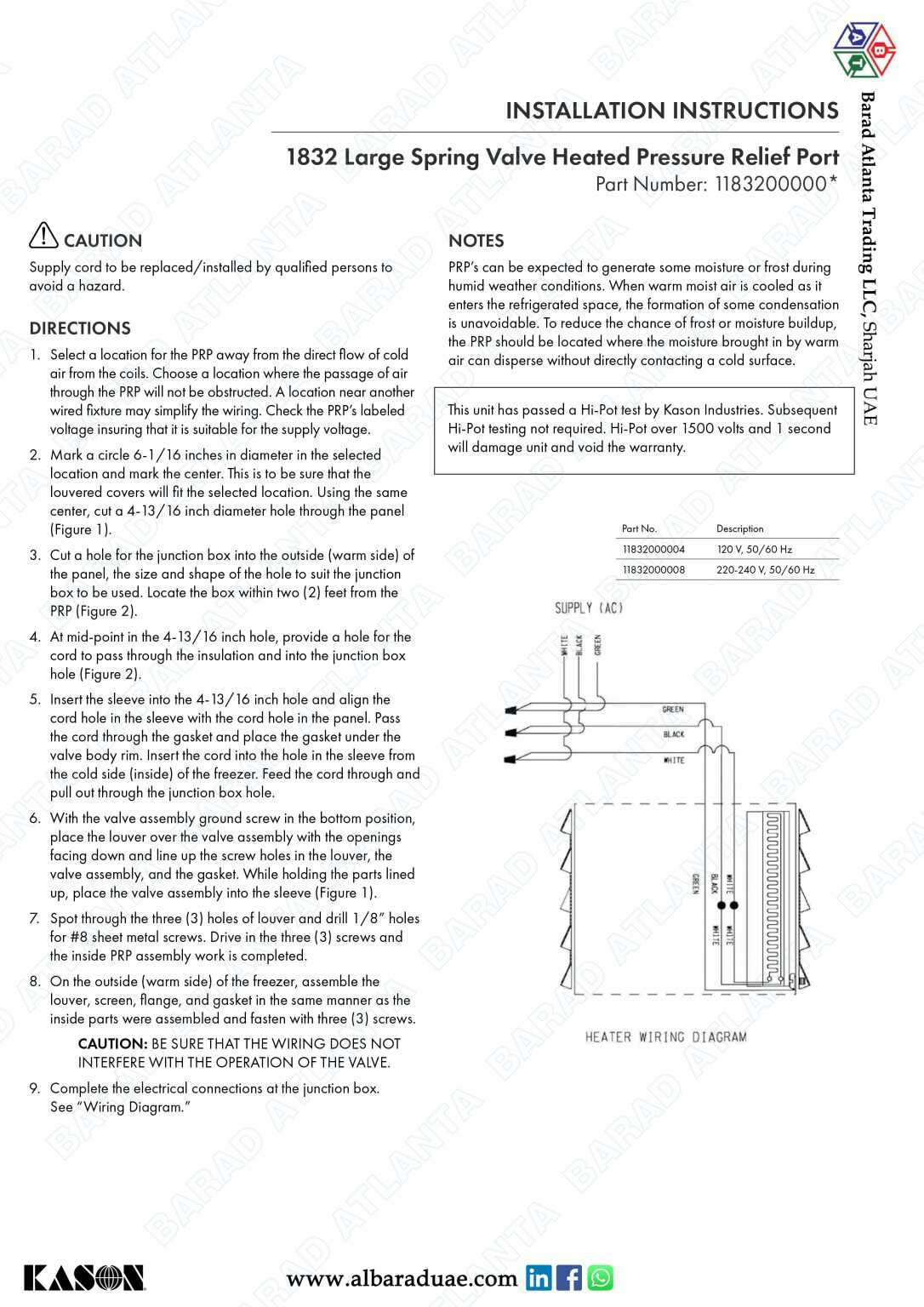 MOUNTING : May be mounted through wall only. Drilled for No. 8 (4.0 mm) screws.